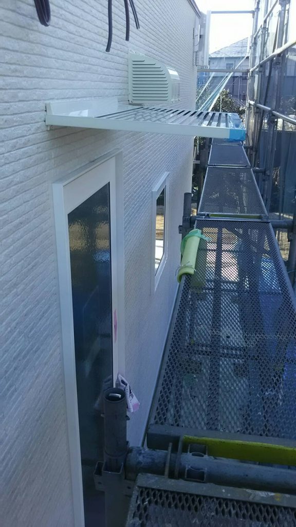 建 材 2018.02.20 ひさし取付工事をしてきました! こんにちは 営業の氏家です。 本日は新築中の現場でひさし取付工事をさせていただきました。 勝手口の上に取付させていただきました。 普通のひさしとは少し違っていてスリットタイプになっており、 太陽の角度によって光の入りがかわってきます。 南面にもおすすめです。 窓周りにはいろいろな商品がありますので、どんどんご紹介していきます。 宜しくお願い致します。